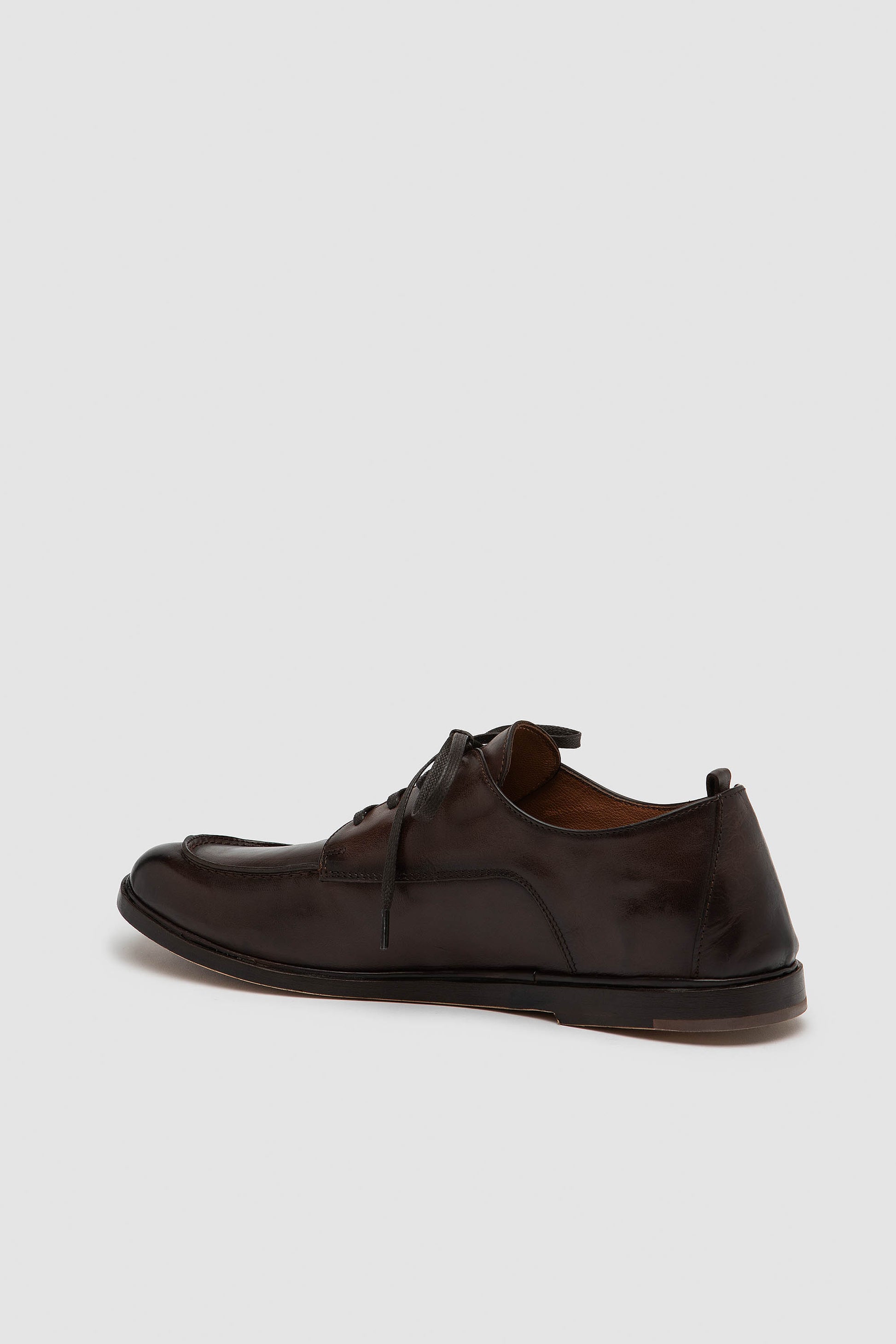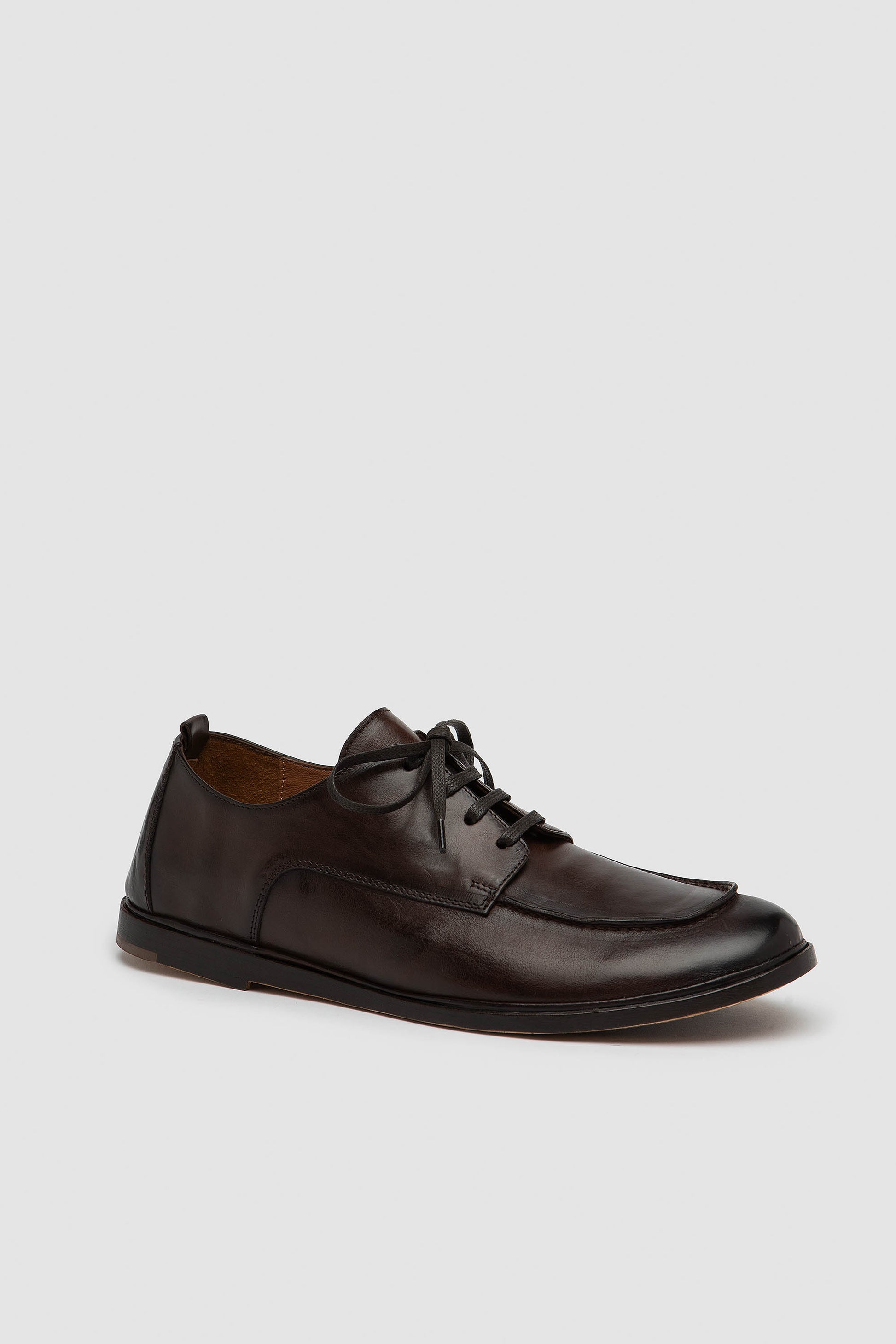 Handgefertigter Derbyschuh aus weichem Leder. Die handwerkliche Sacchetto‑Machart, aus einem einzigen Stück Leder geformt, sorgt für ein weiches, leichtes und natürlich flexibles Tragegefühl. Das Innere ist mit feinem Nappaleder ausgestattet und bietet ein angenehmes Gefühl sowie eine ausgewogene Passform. Natürliche Ledersohle mit transparentem Gummieinsatz.
