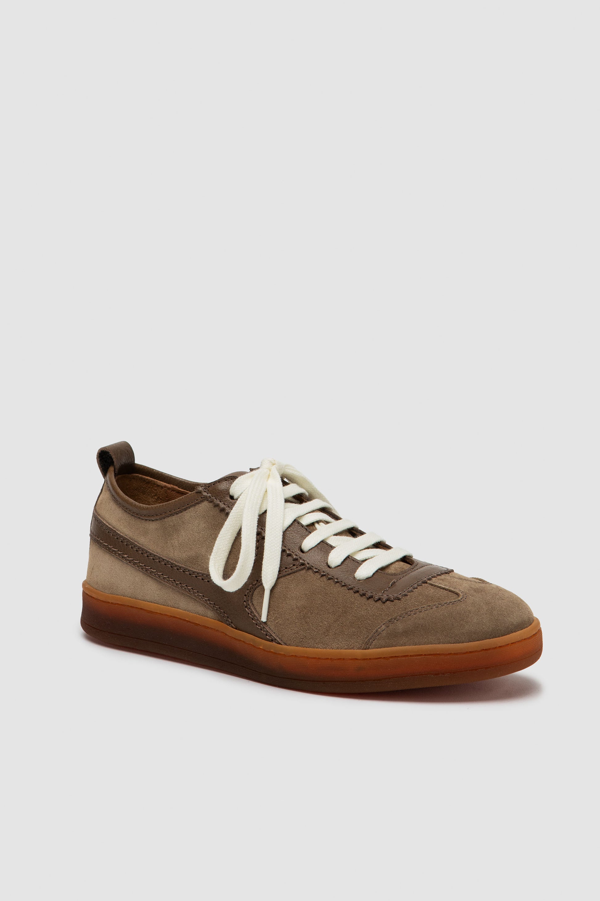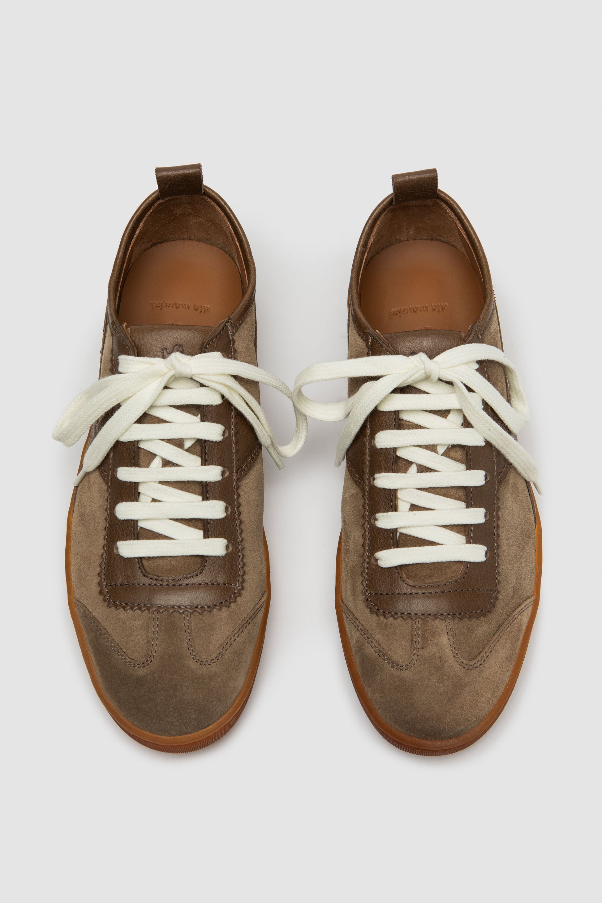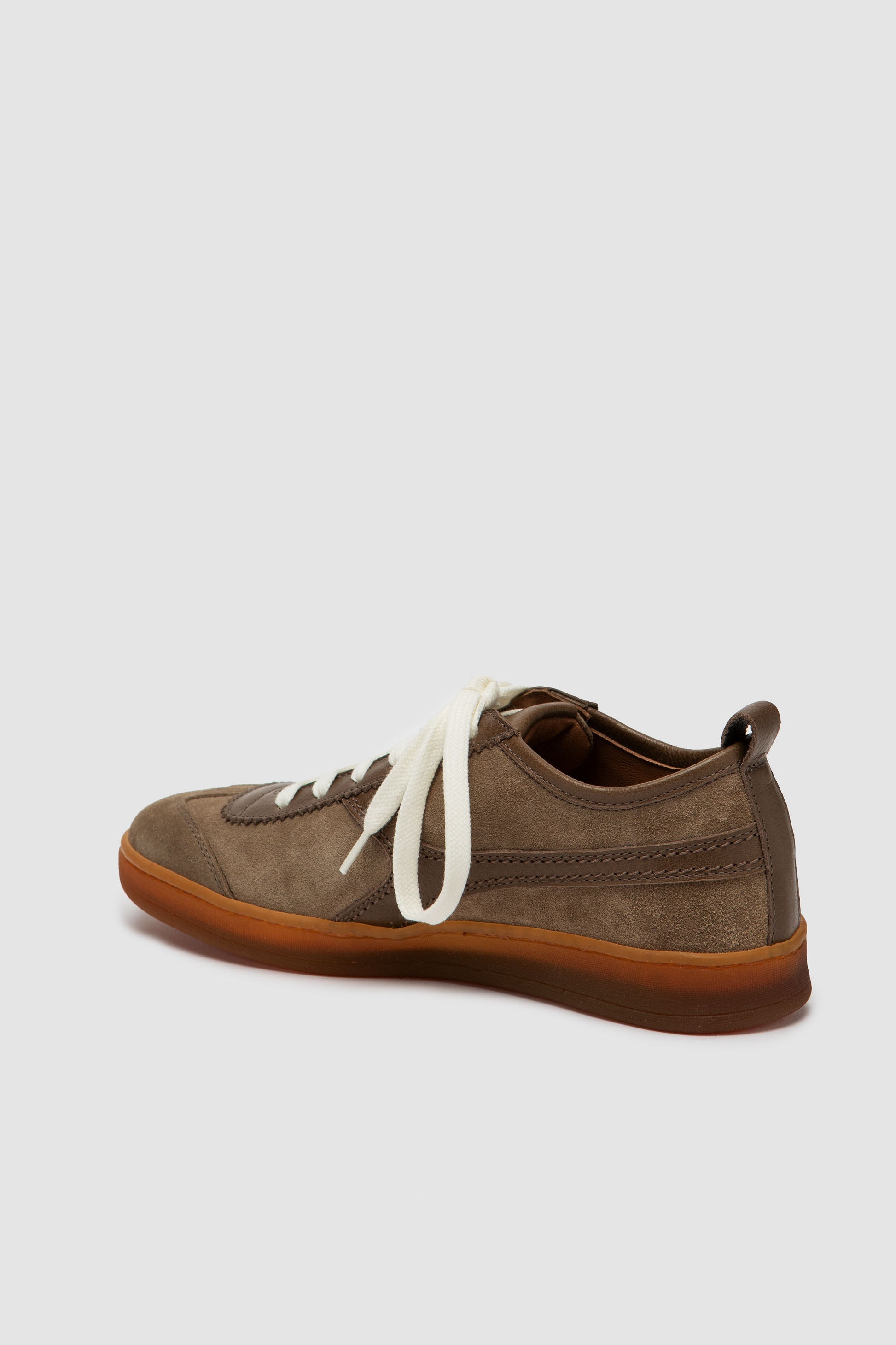 Handgefertigter Sneaker aus weichem Veloursleder mit einem klaren, minimalistischen Design, das die natürliche Struktur des Materials hervorhebt. Die leichte Konstruktion und die Sohle aus natürlichem Kautschuklatex bieten Flexibilität und Komfort. Das Innere ist ungefüttert für ein frisches und leichtes Tragegefühl.