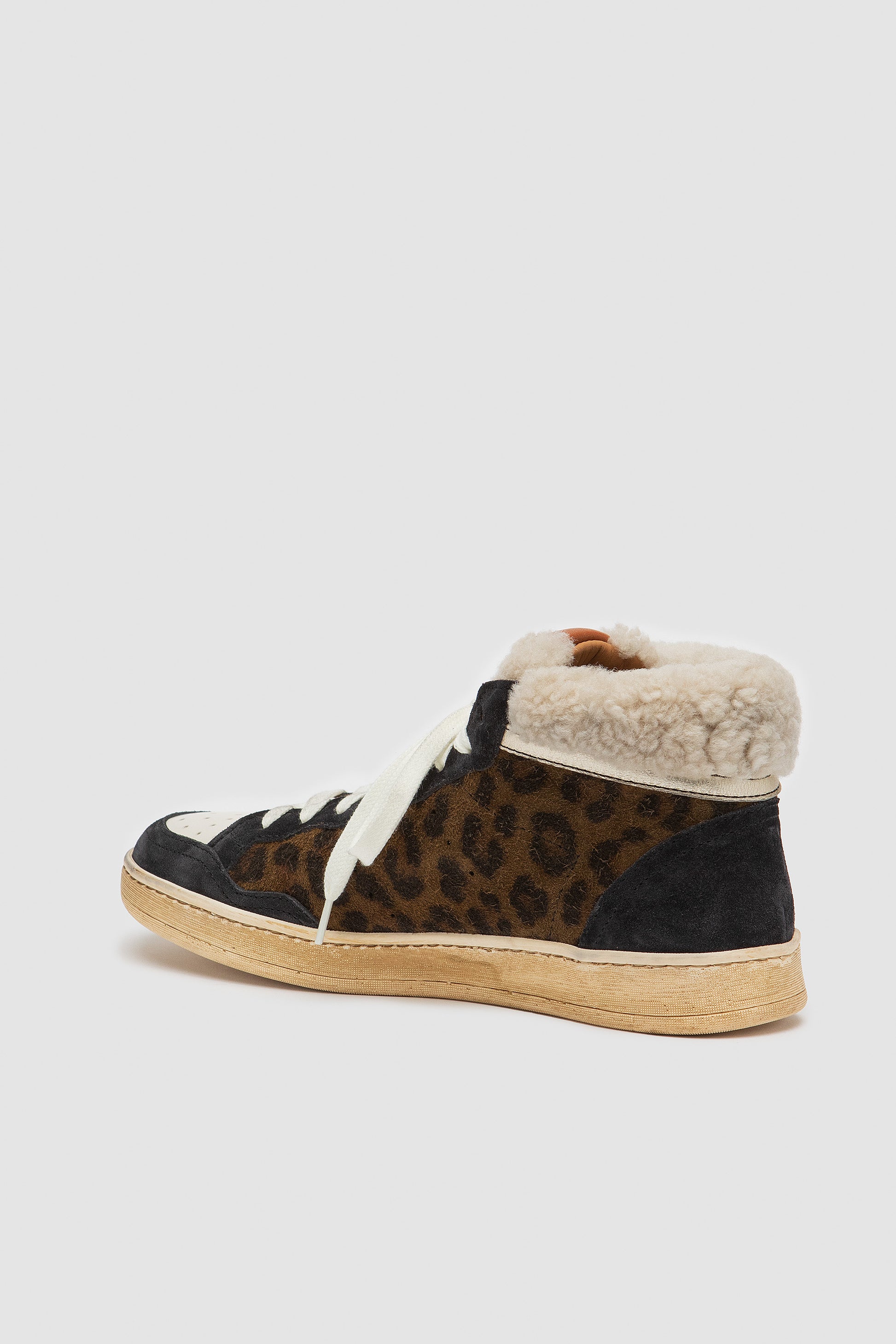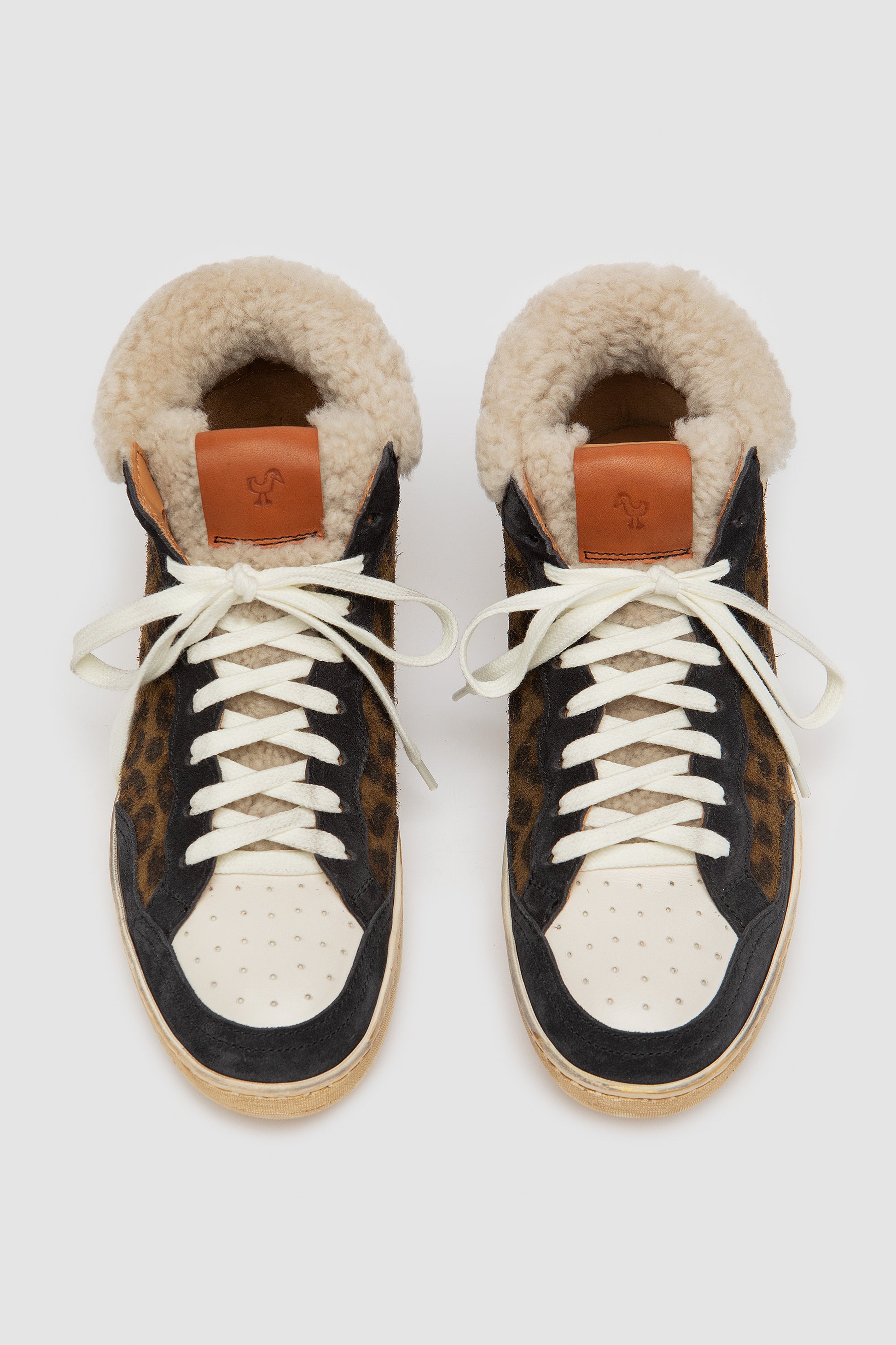 Sneaker en daim ultra-souple à imprimé léopard, dotée d’une semelle intérieure en véritable shearling.