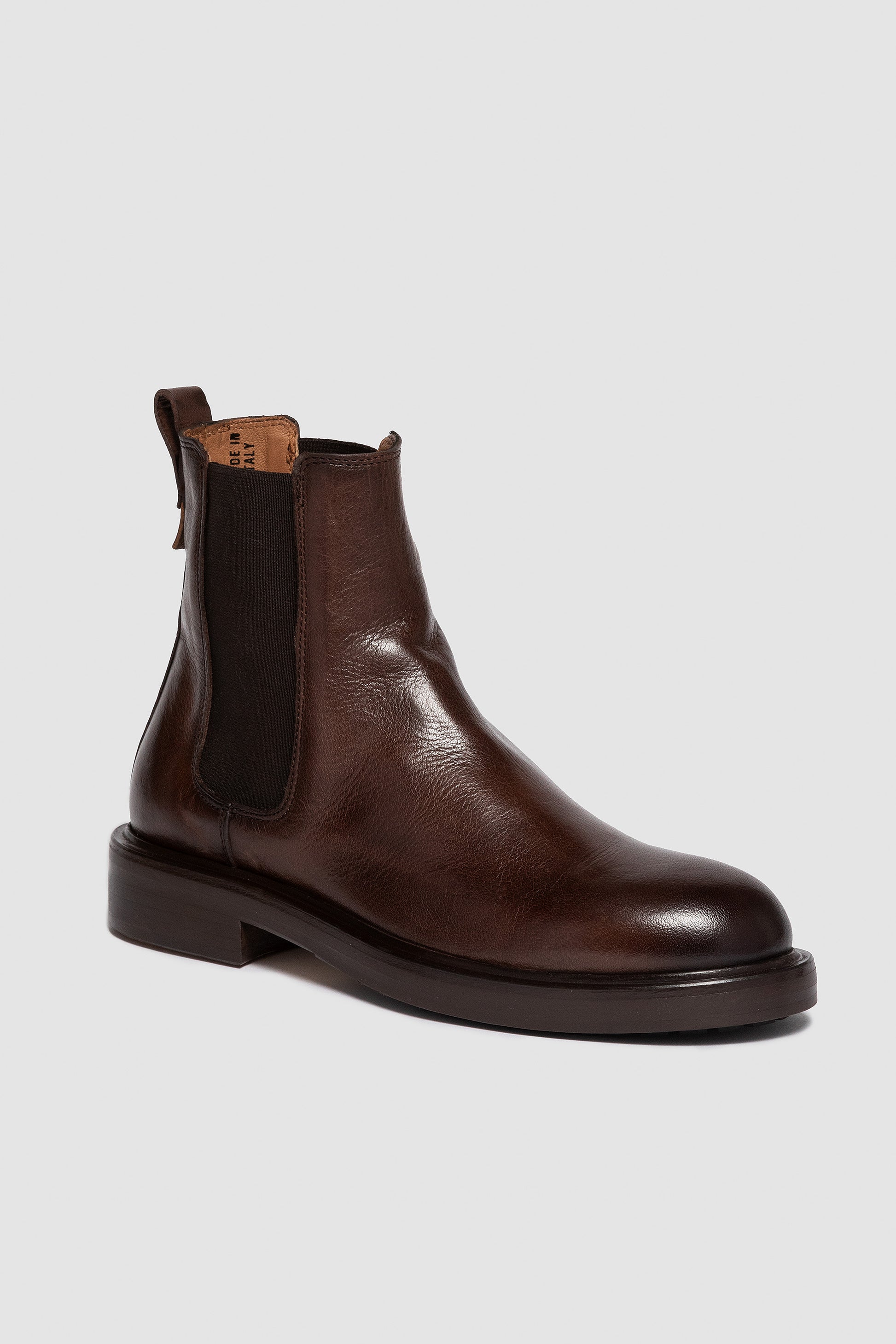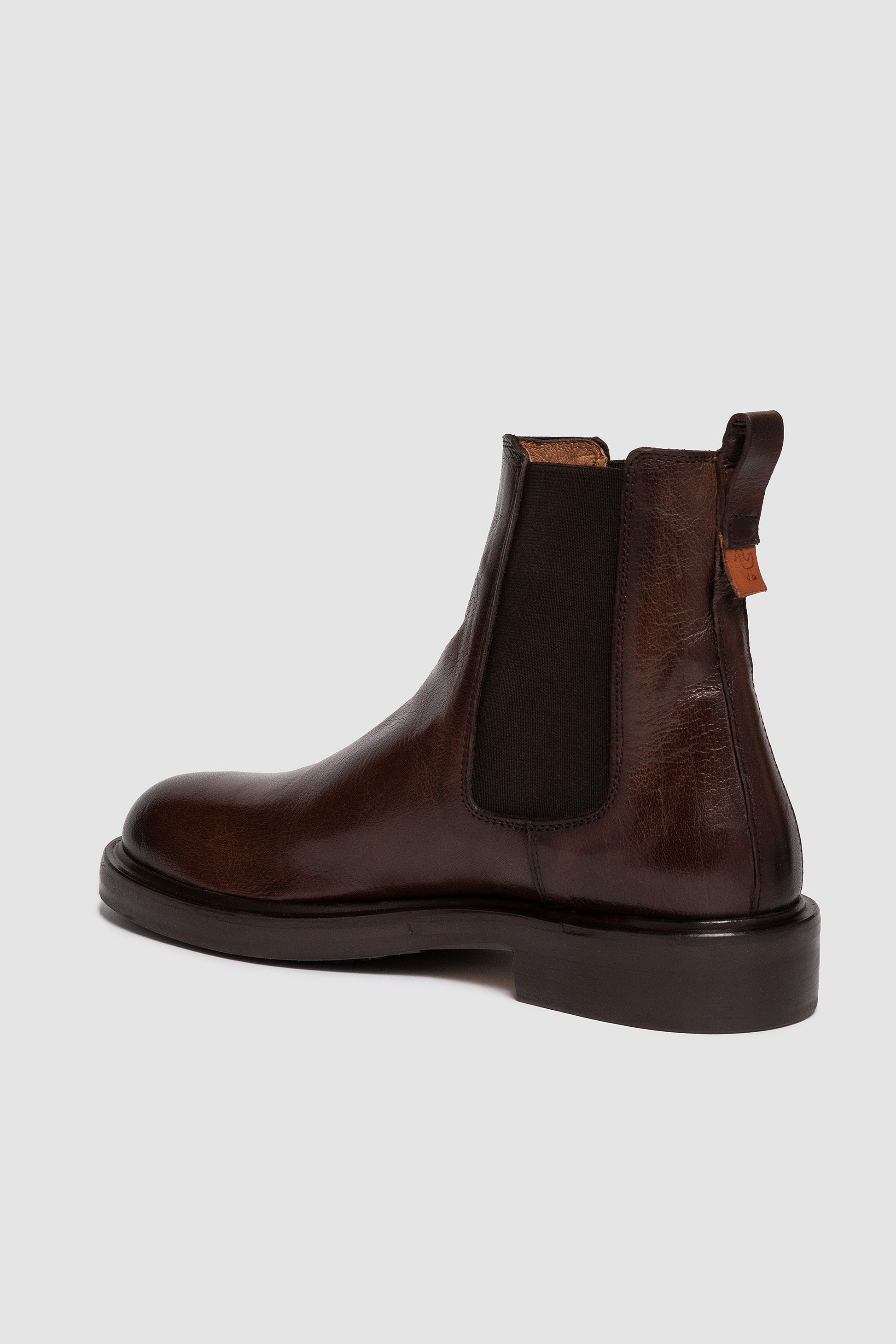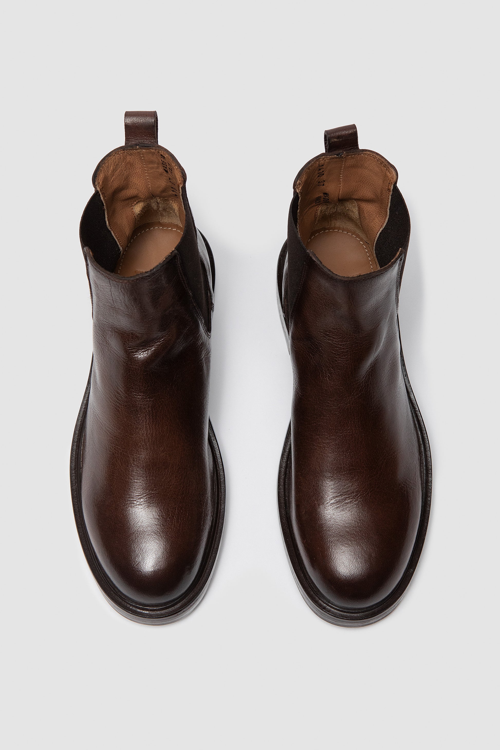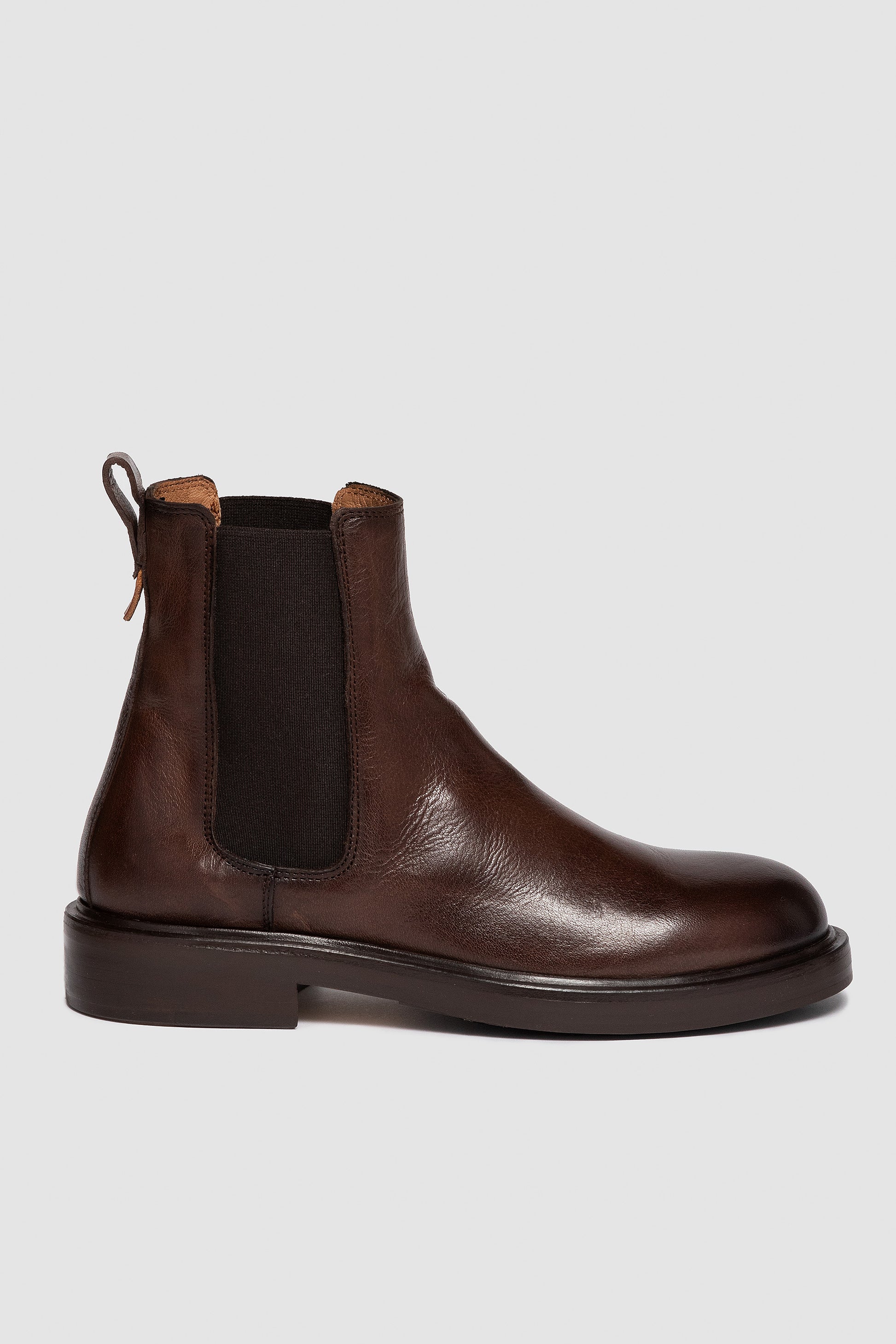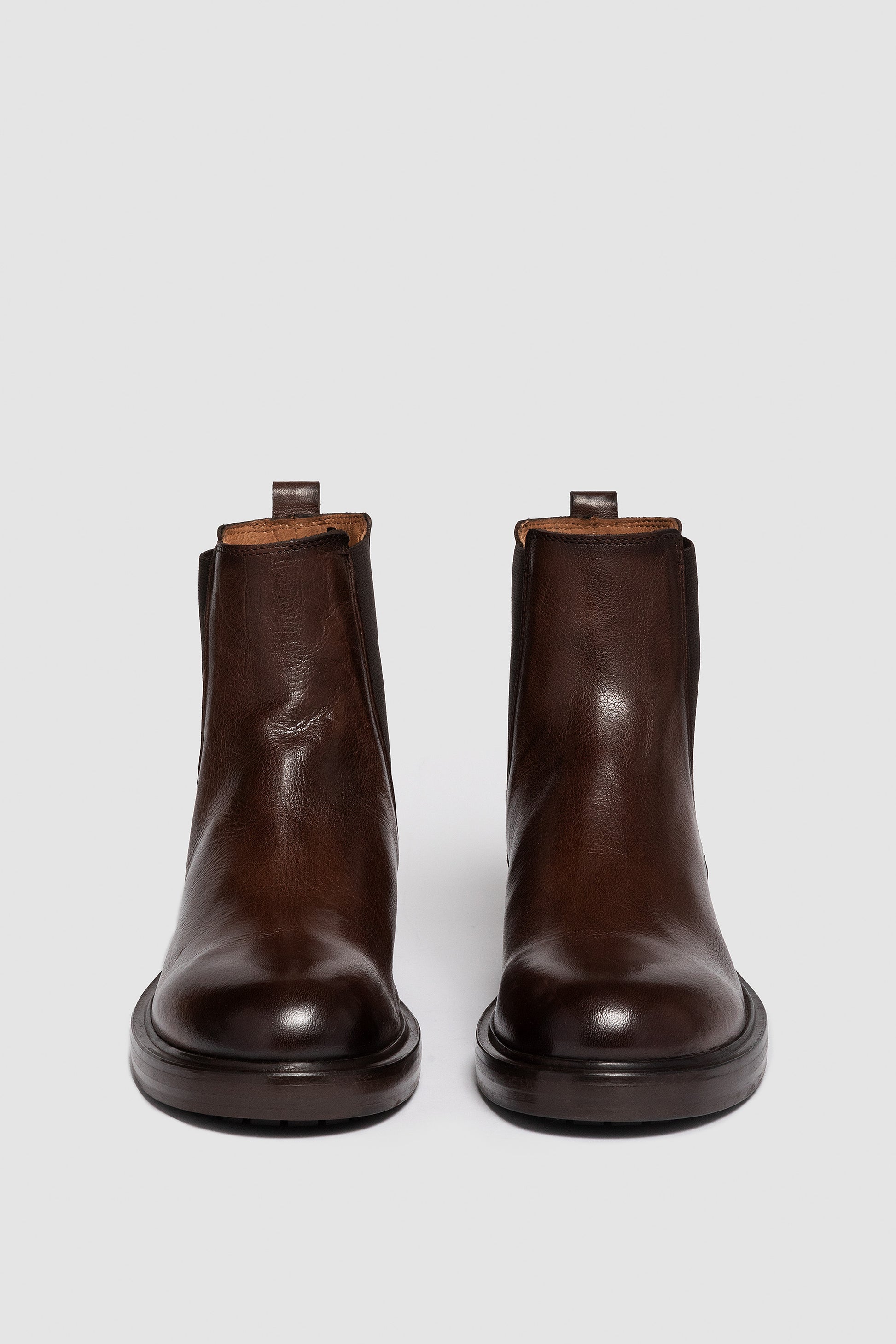 Stivaletto Chelsea in pelle di bufalo conciata al vegetale al 100%, con tripla suola in cuoio e inserto in gomma antiscivolo.