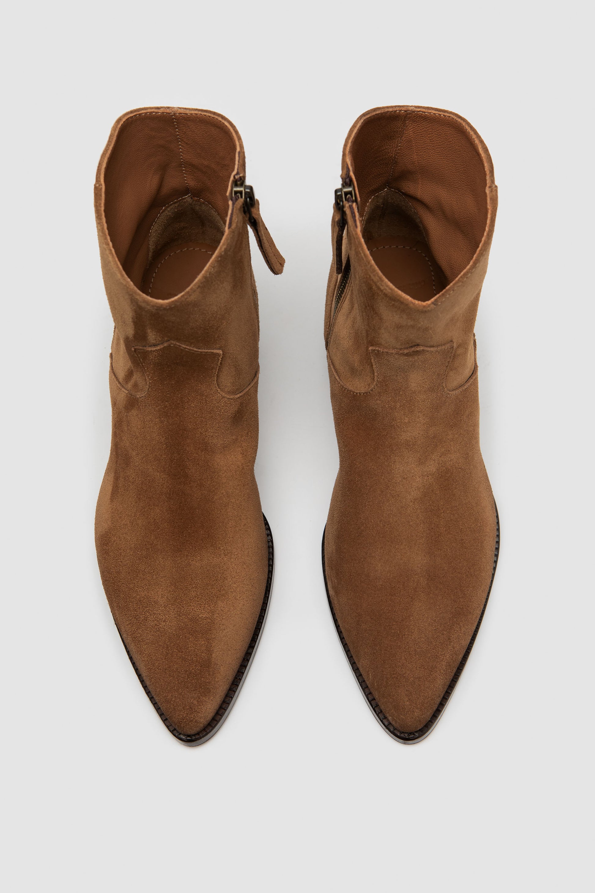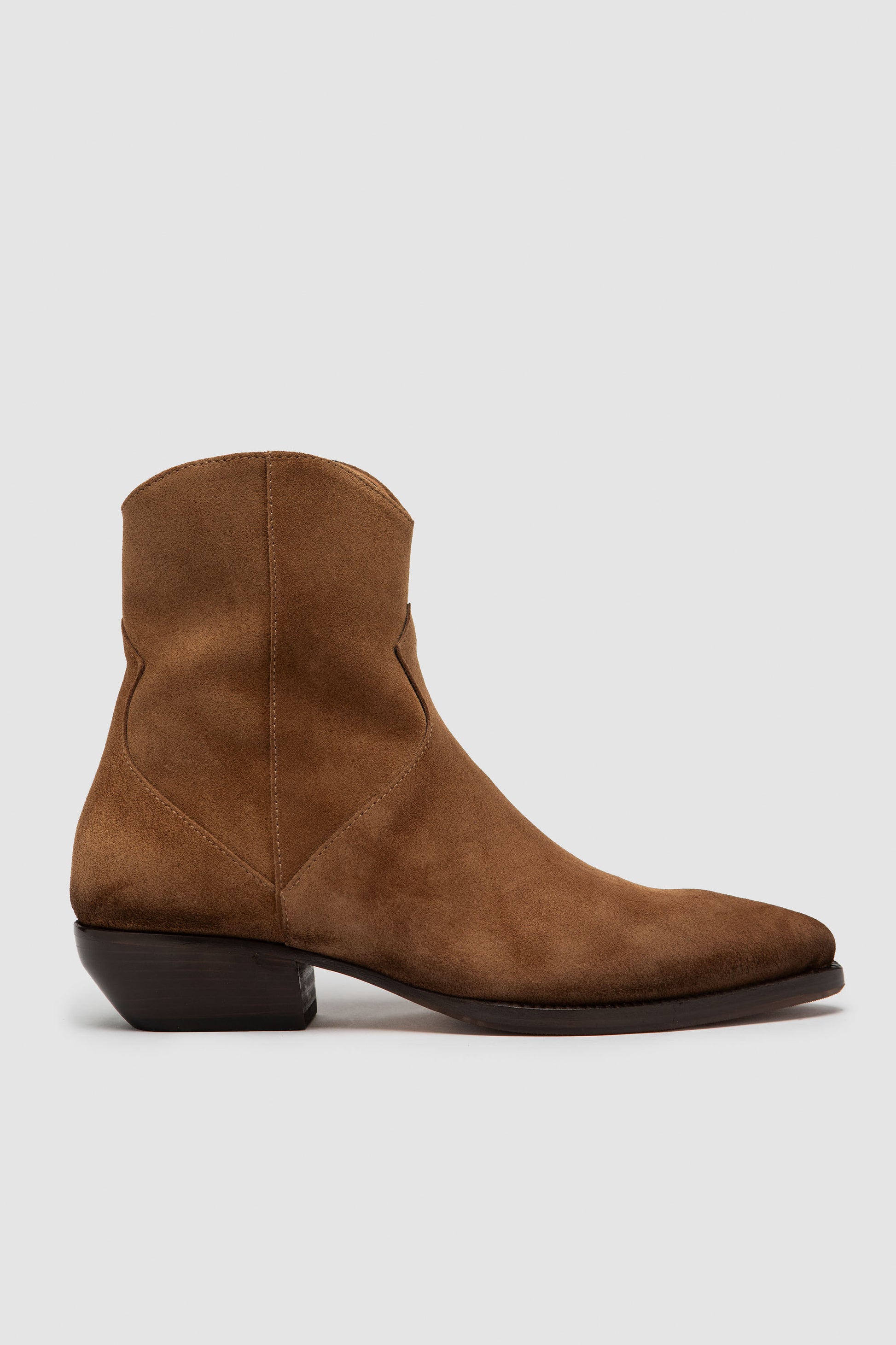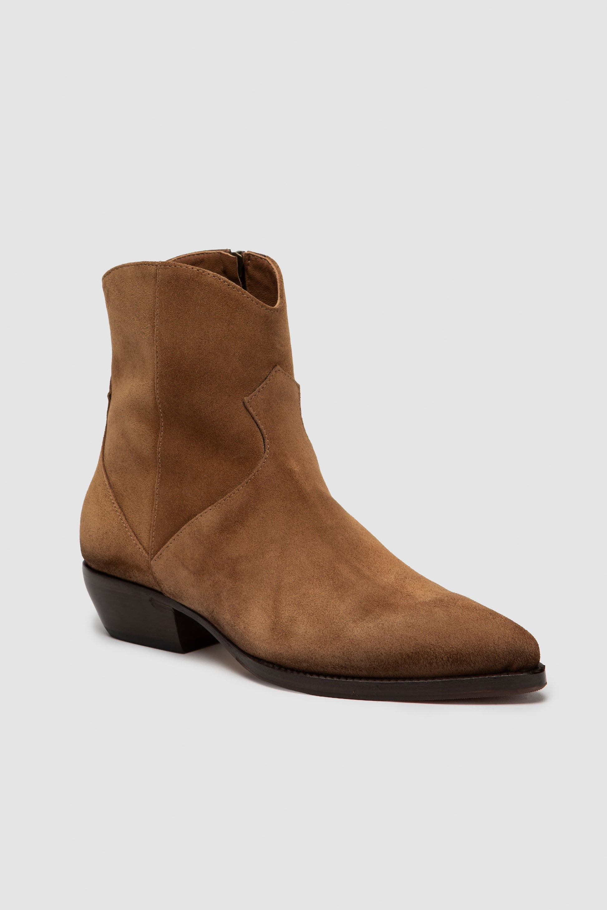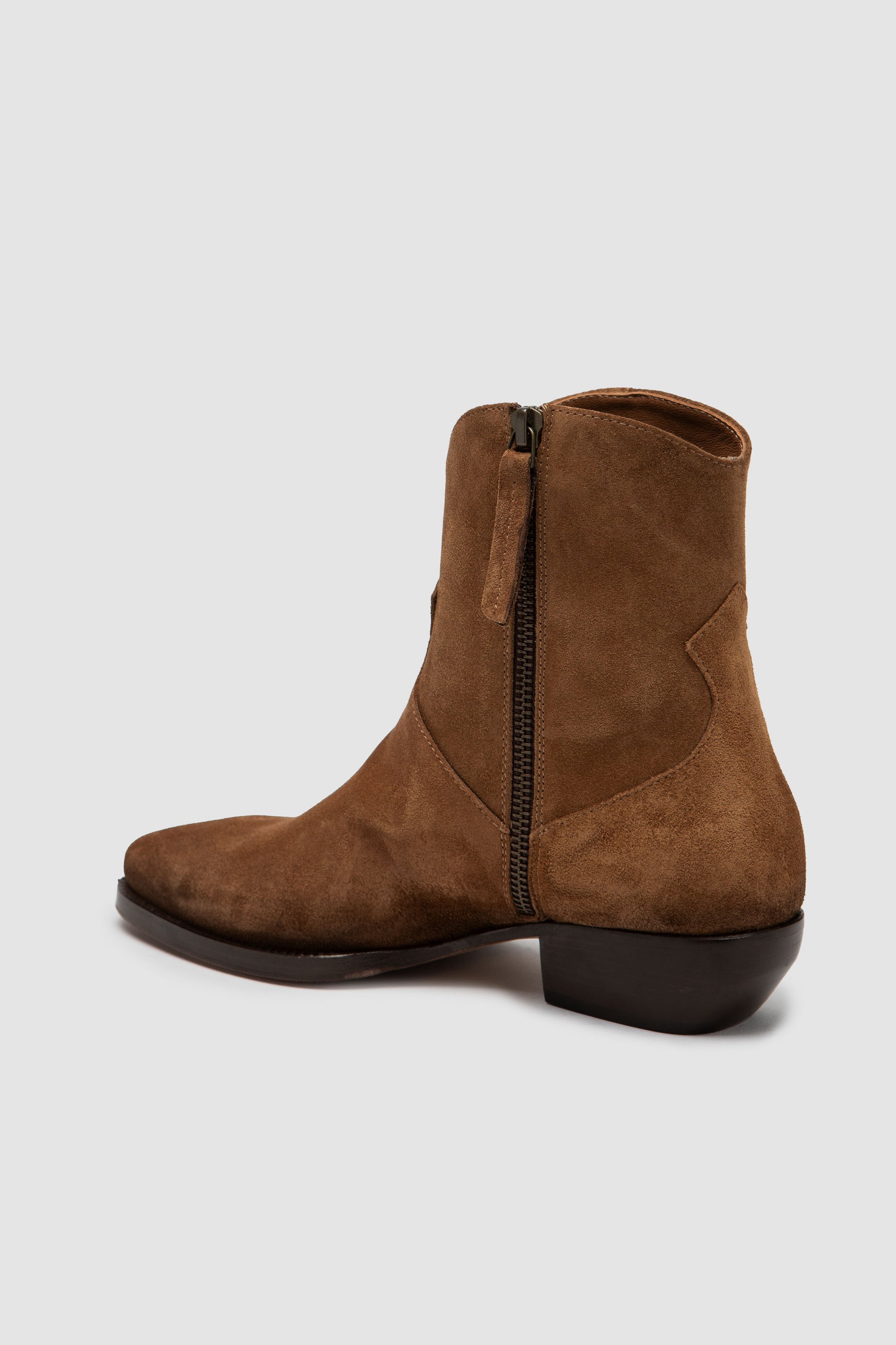 Stivaletto artigianale in camoscio premium morbido con zip interna. L’interno è rifinito in pregiata nappa per una sensazione piacevole e una calzata equilibrata. Suola in cuoio naturale con inserto in gomma trasparente.