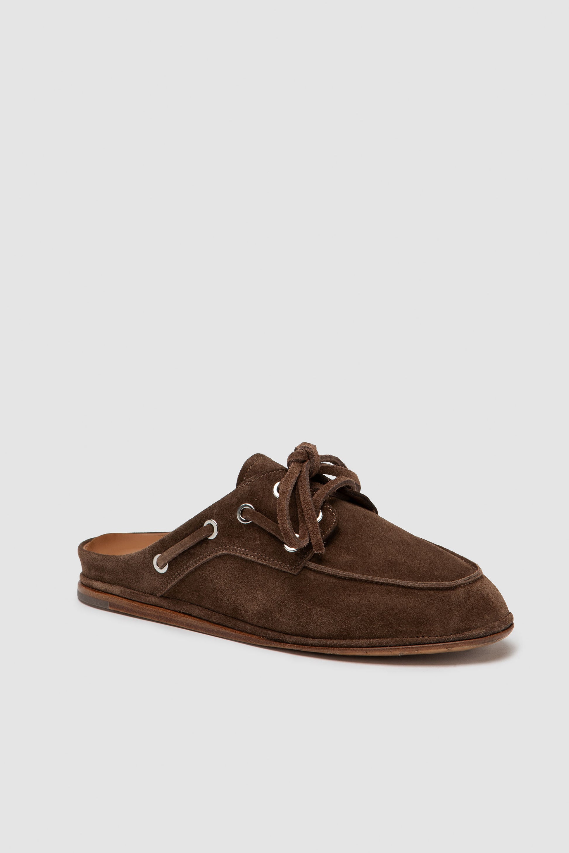 Handmade boat mule in soft suede and leather laces. Artisanal Sacchetto construction, shaped from a single piece of leather for a soft, light and naturally flexible feel. The interior is finished with fine nappa leather for a pleasant feel and a balanced fit.
