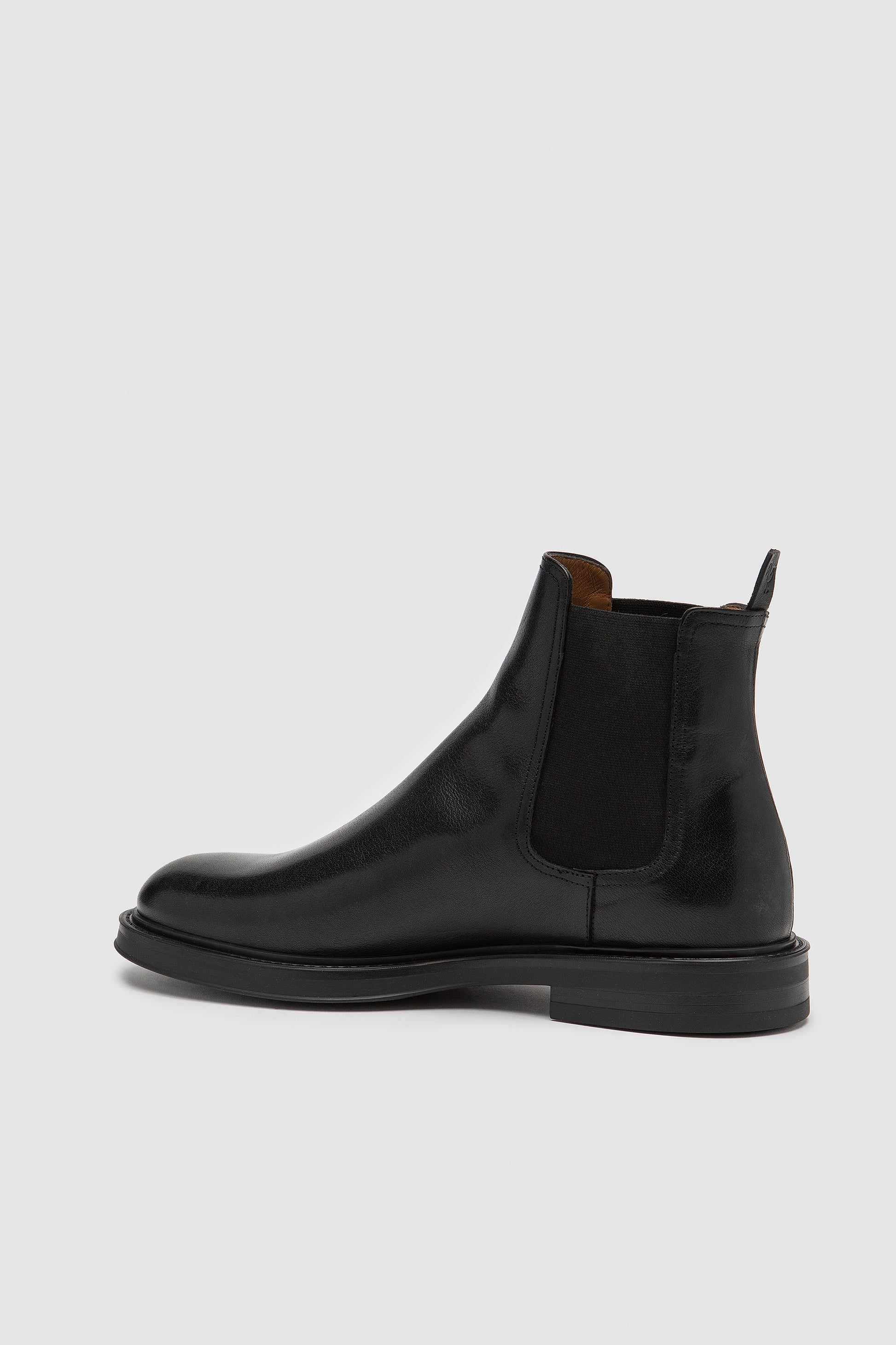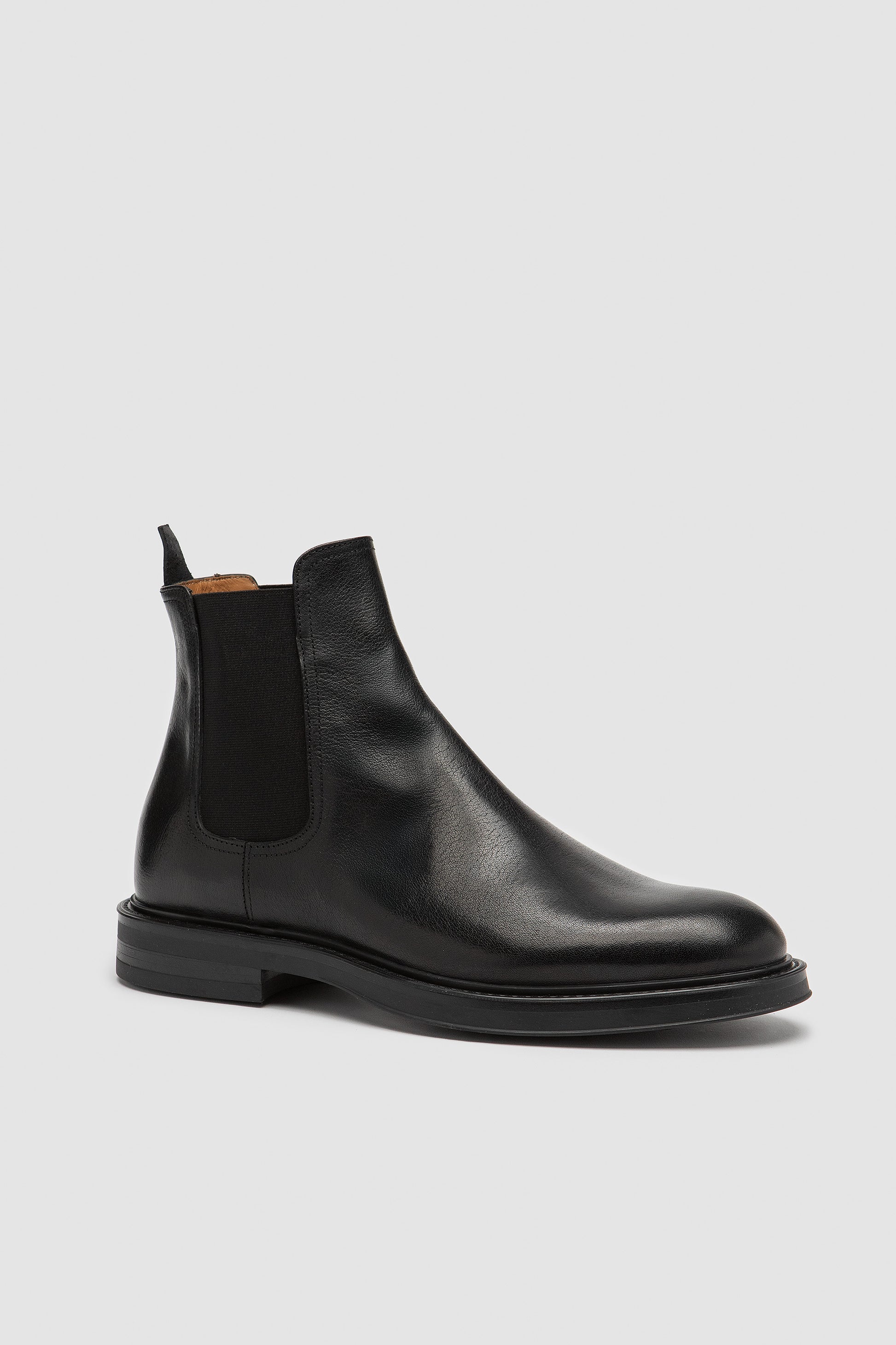 Chelsea boot in elegant black full calf leather. The inner nappa lining pairs with a leather and rubber sole to provide firm yet lightweight comfort.