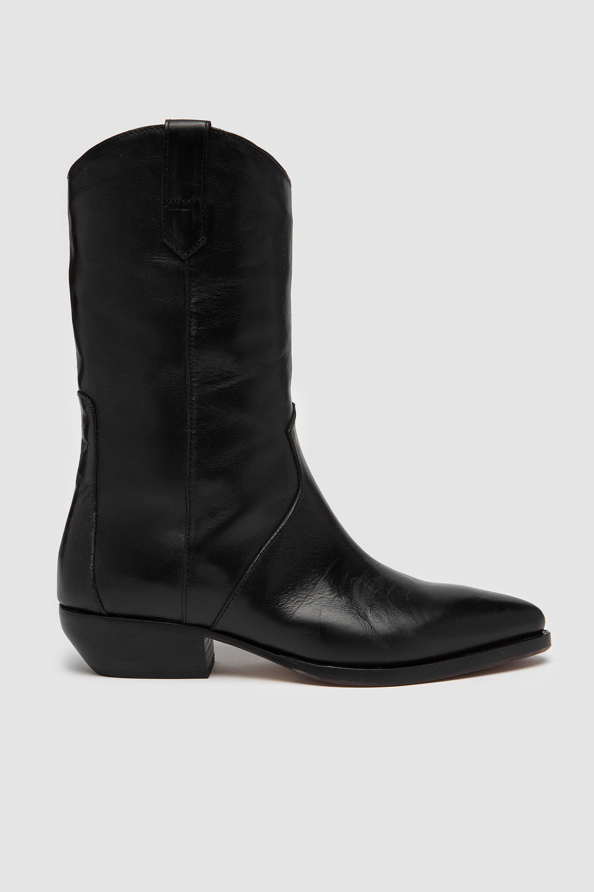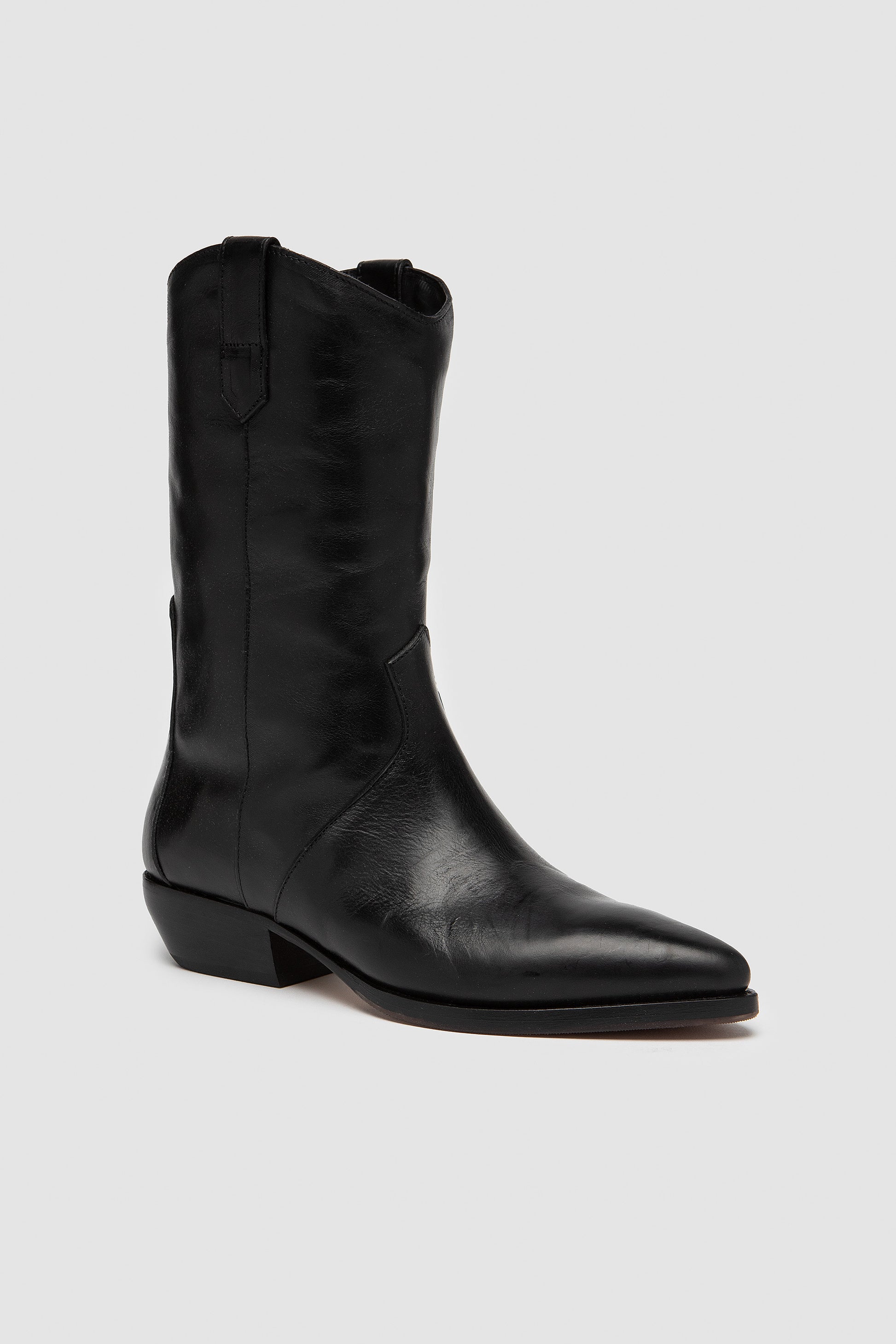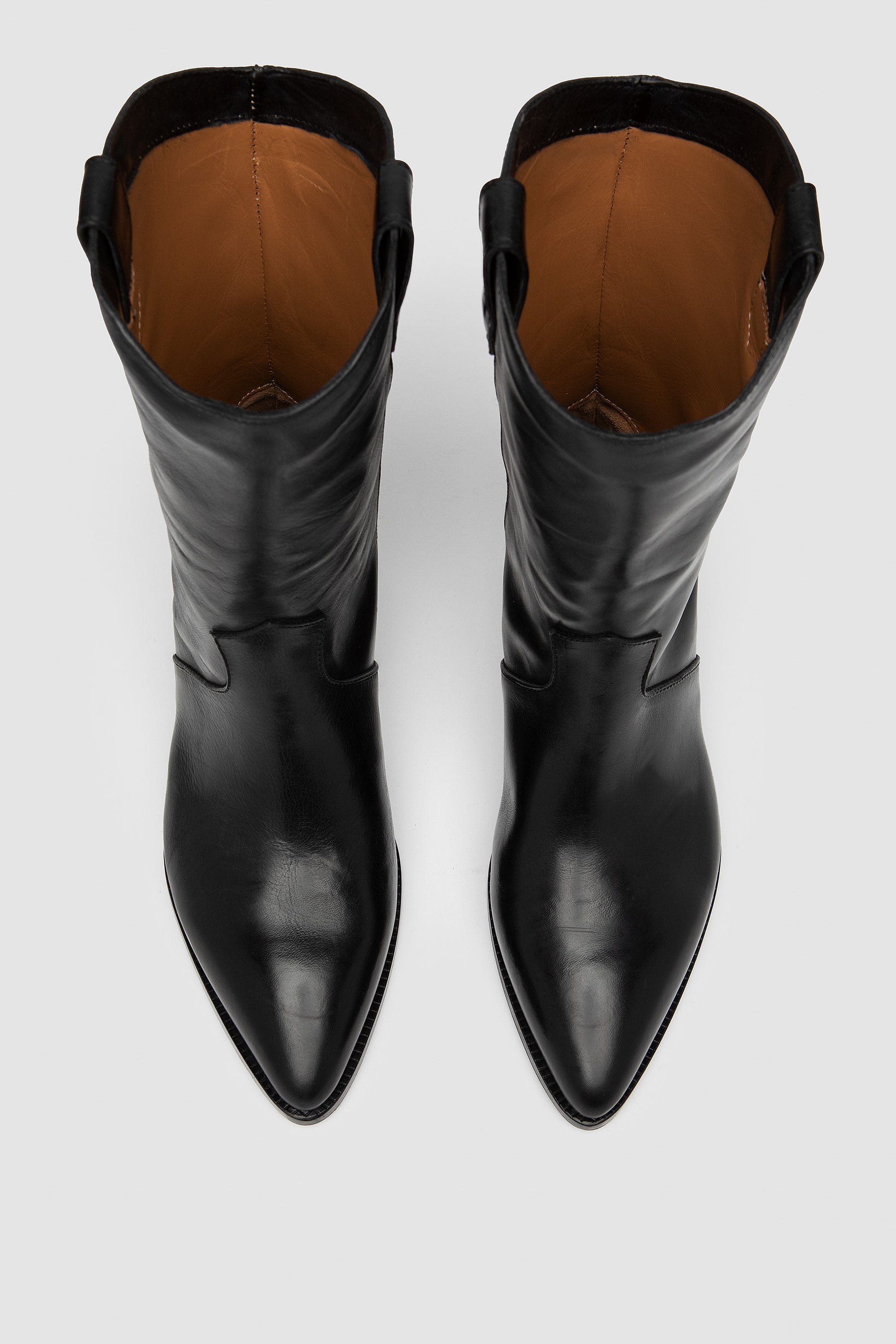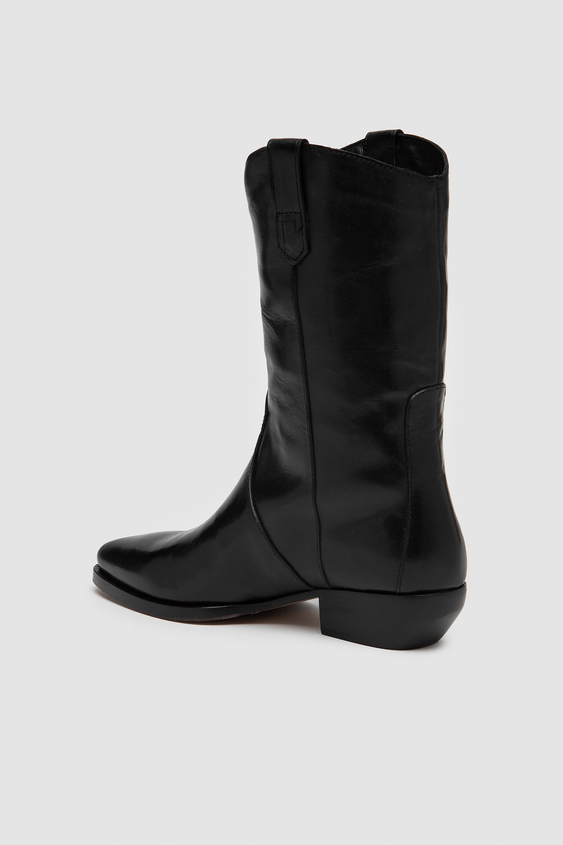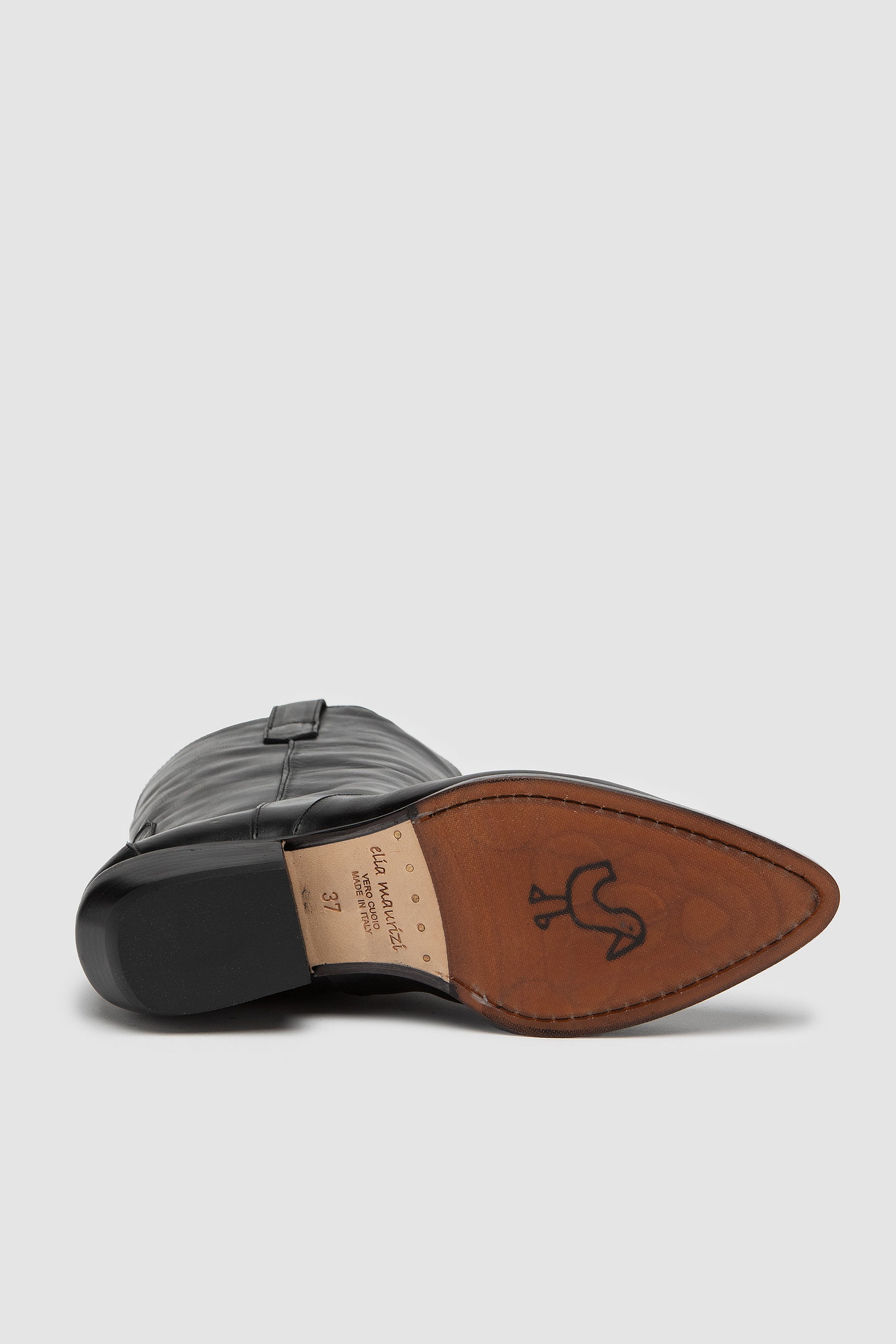 Black boot, featuring an internal lining in soft nappa, handmade with vegetable-tanned full-grain leather. Leather sole with transparent rubber inserts.