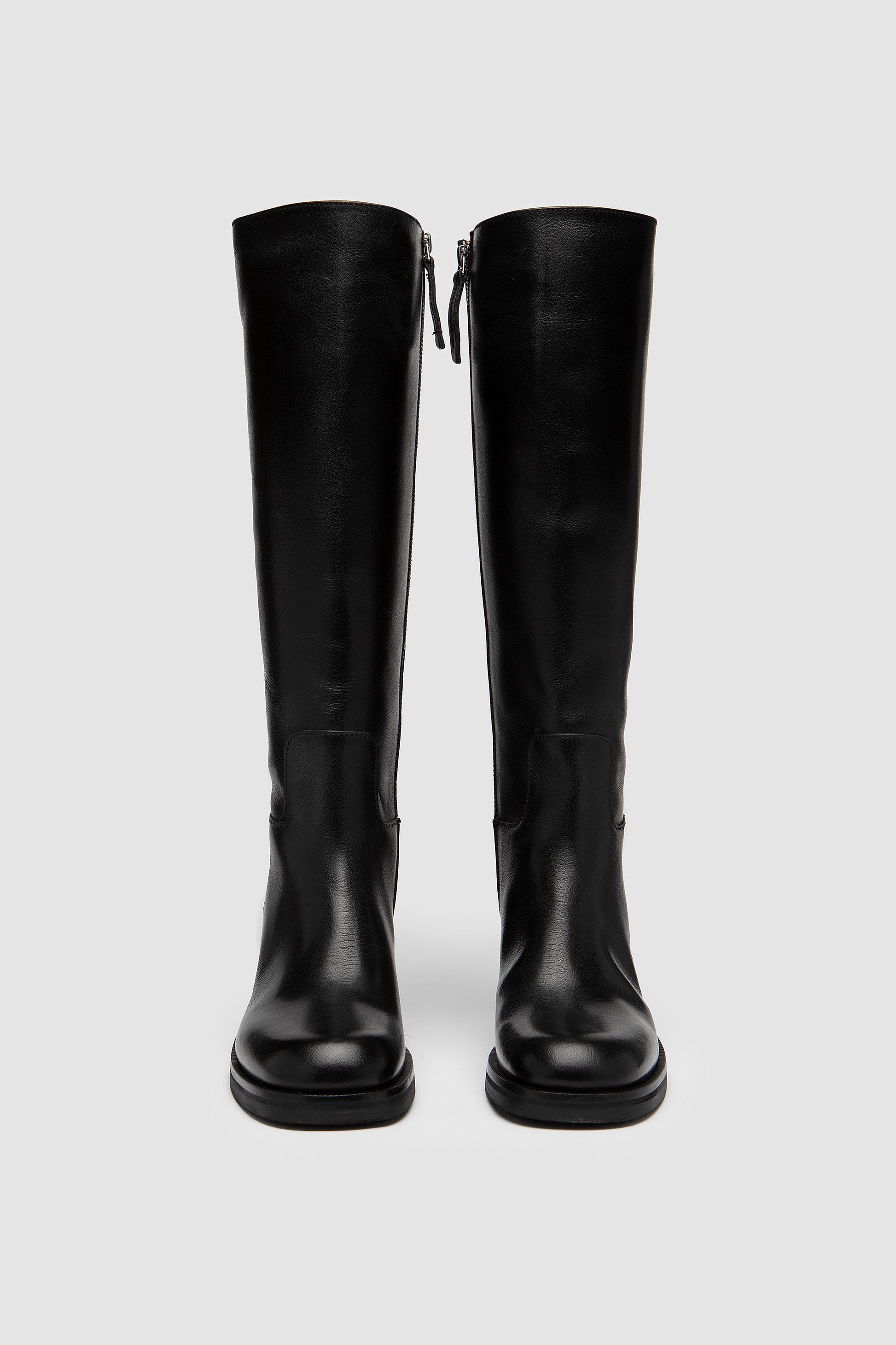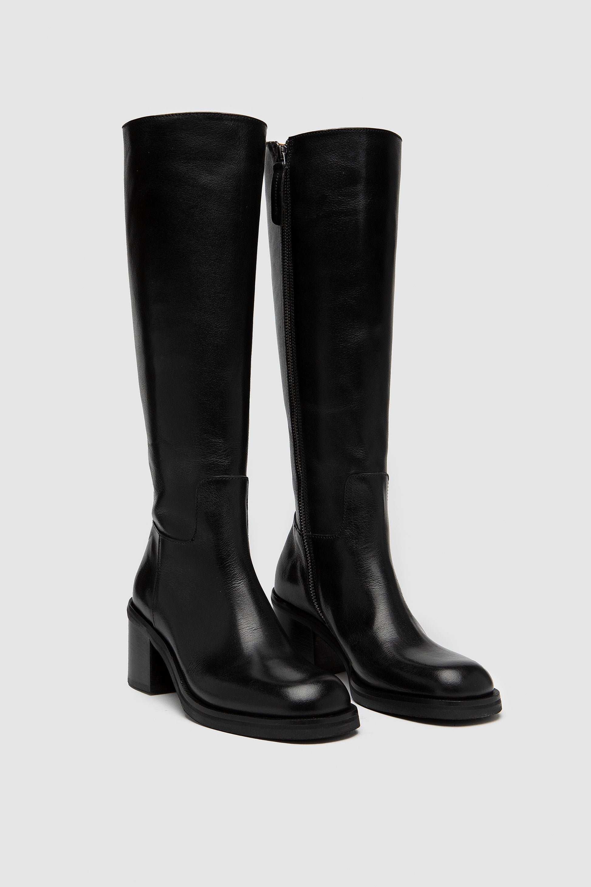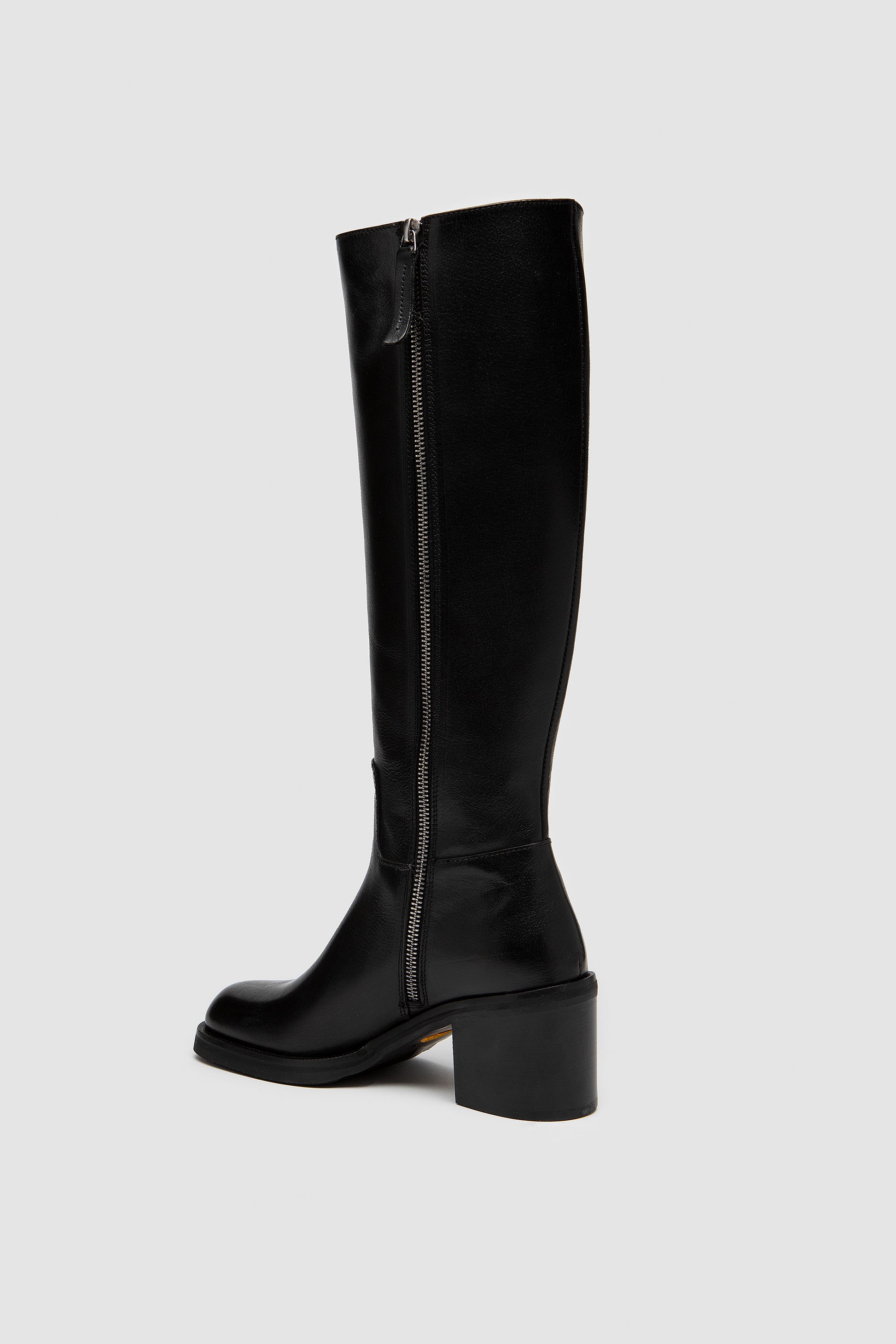 Boot in full black calf leather with soft nappa inner lining and a zip closure on the inner side. Finished with a leather sole and heel, it is crafted by hand from fine leathers to provide structure along with remarkable comfort.